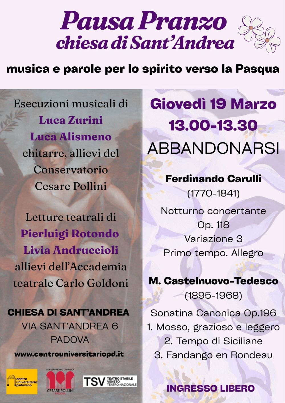 Giovedì 5-12-19-26 Marzo 2026 - ore 13.00