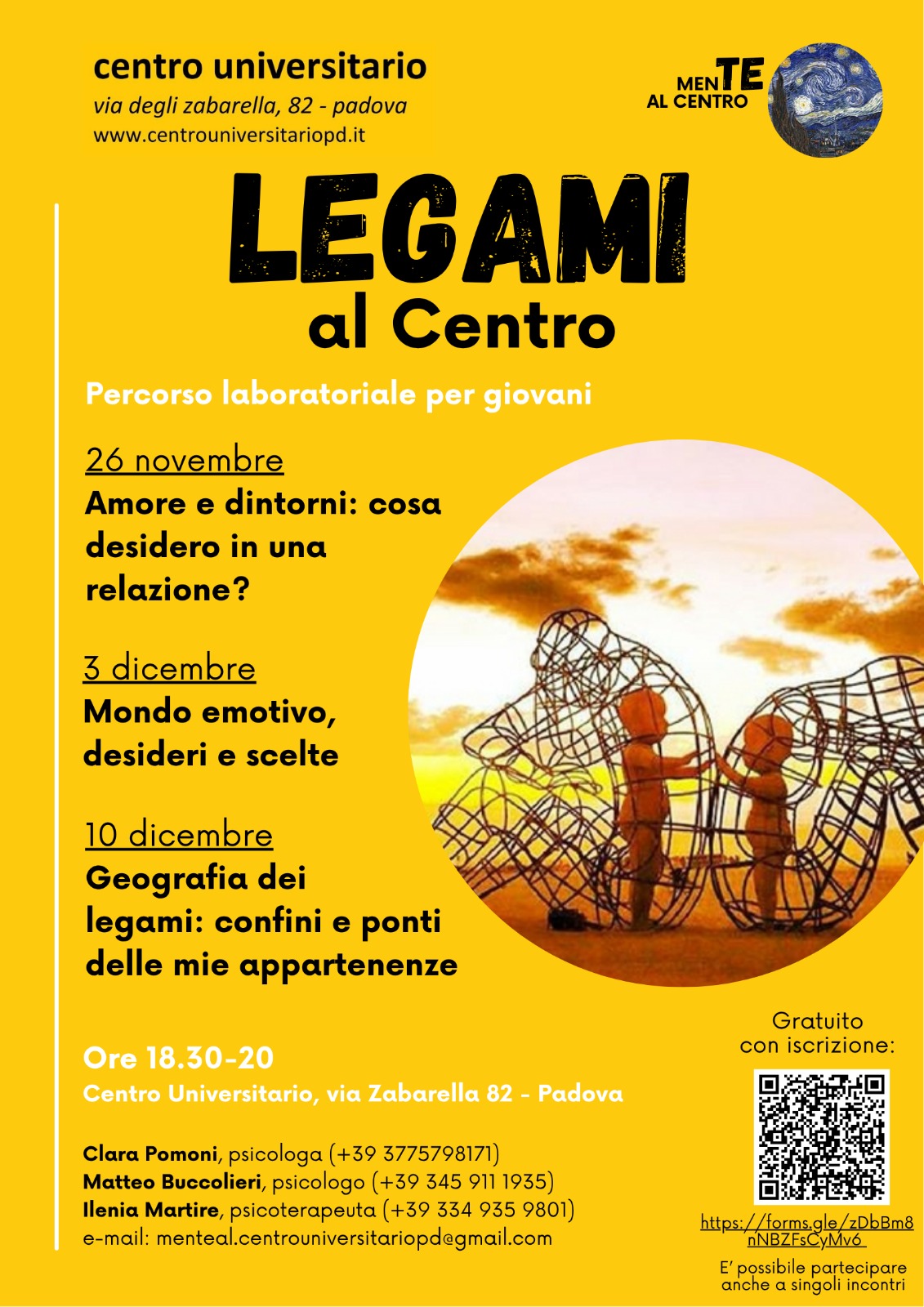 una proposta di supporto psicologico con colloqui individuali, su appuntamento, e percorsi di gruppo tematici