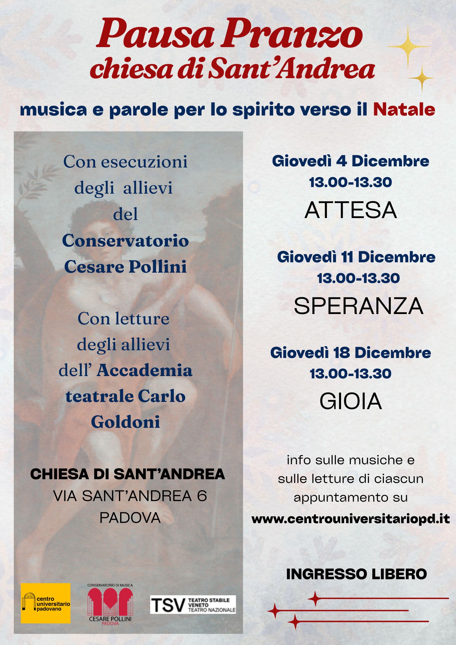 Mercoledì 26 Novembre - Mercoledì 3 Dicembre - Mercoledì 10 Dicembre 2025 - ore 18.30
