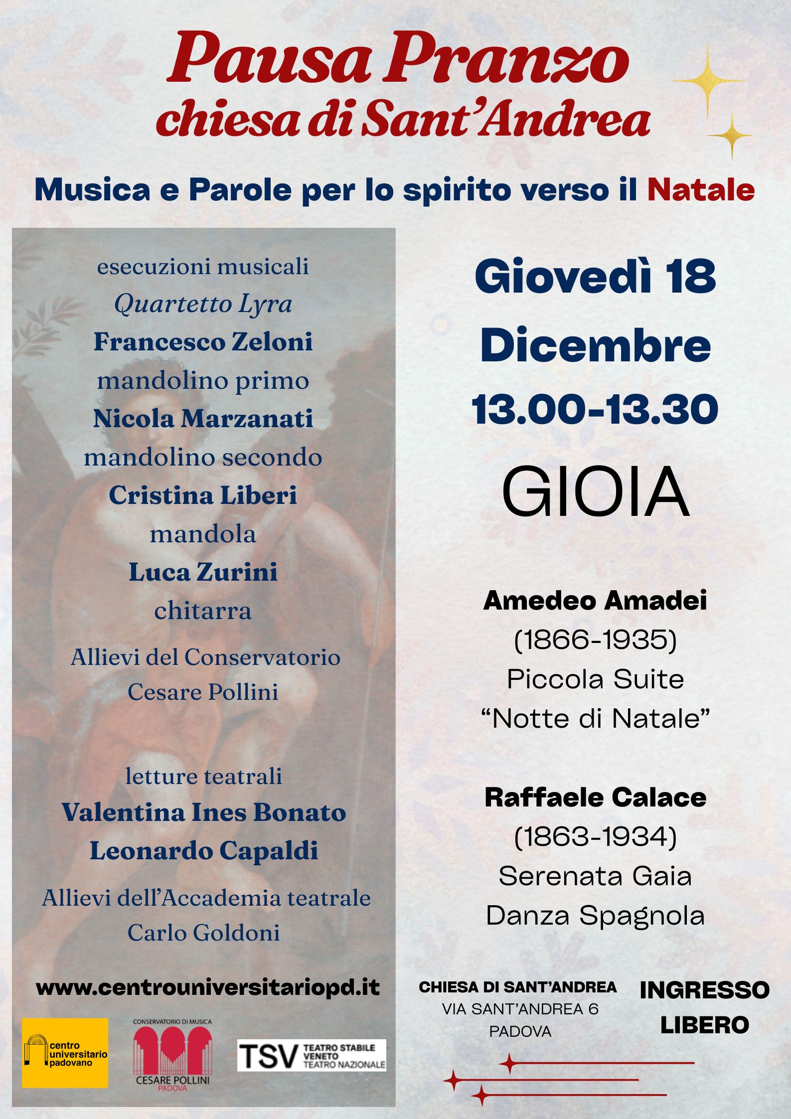 Giovedì 4-11-18 Dicembre 2025 - ore 13.00