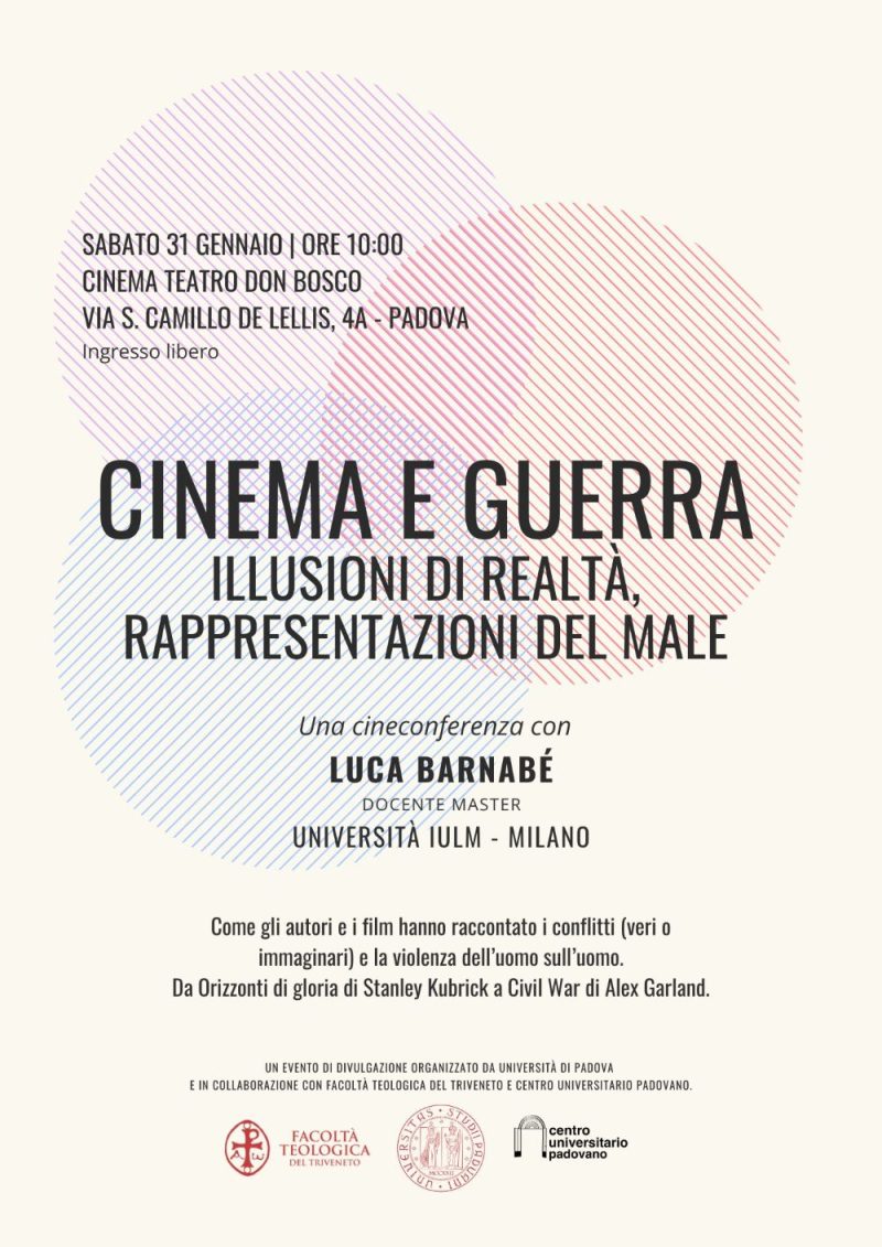 archivio proposte del centroSabato 31 Gennaio 2026 - ore 10.00Cinema e guerra. Illusioni di realtà, rappresentazioni del maleal cinema teatro don bosco di via de lellis Indietro
