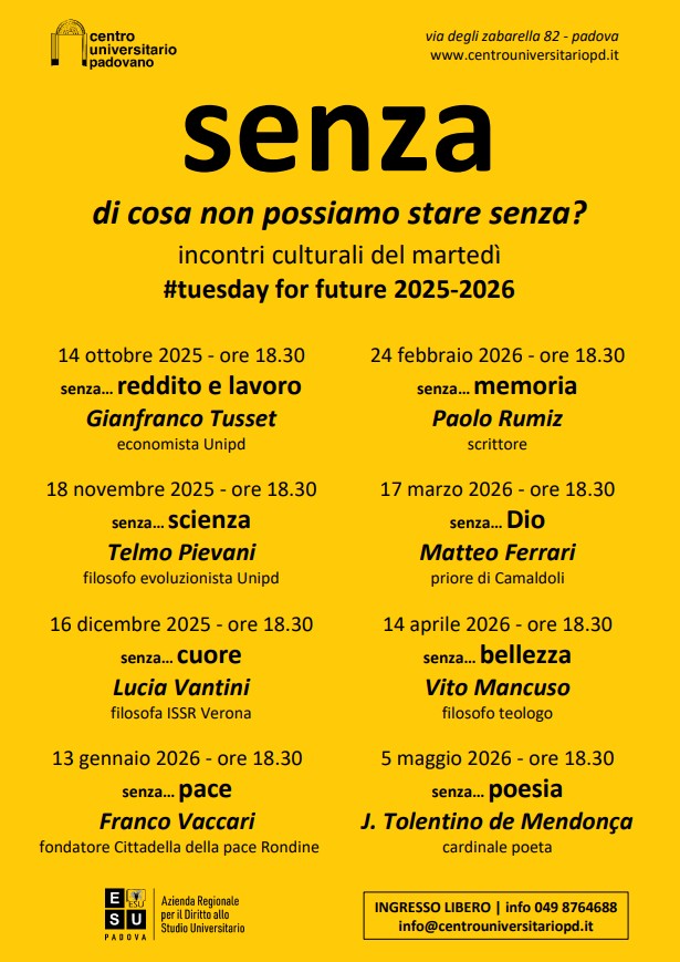 L’incontro si svolgerà in presenza al centro universitario e sarà anche registrato e successivamente reso disponibile sulla pagina youtube del centro universitario al link: