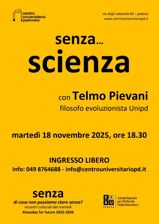 Telmo Pievani, filosofo ed evoluzionista, ricopre la prima cattedra italiana di Filosofia delle Scienze Biologiche presso il Dipartimento di Biologia dell’Università di Padova. Tra i suoi libri: Tutti i mondi possibili. Un’avventura nella grande biblioteca dell’evoluzione (2024), Serendipità (2021), Finitudine (2020), Imperfezione (2019), Homo sapiens e altre catastrofi (2018) e La vita inaspettata (2011). Collabora con “Il Corriere della Sera”, “Le Scienze” e “Lucy sui Mondi”.