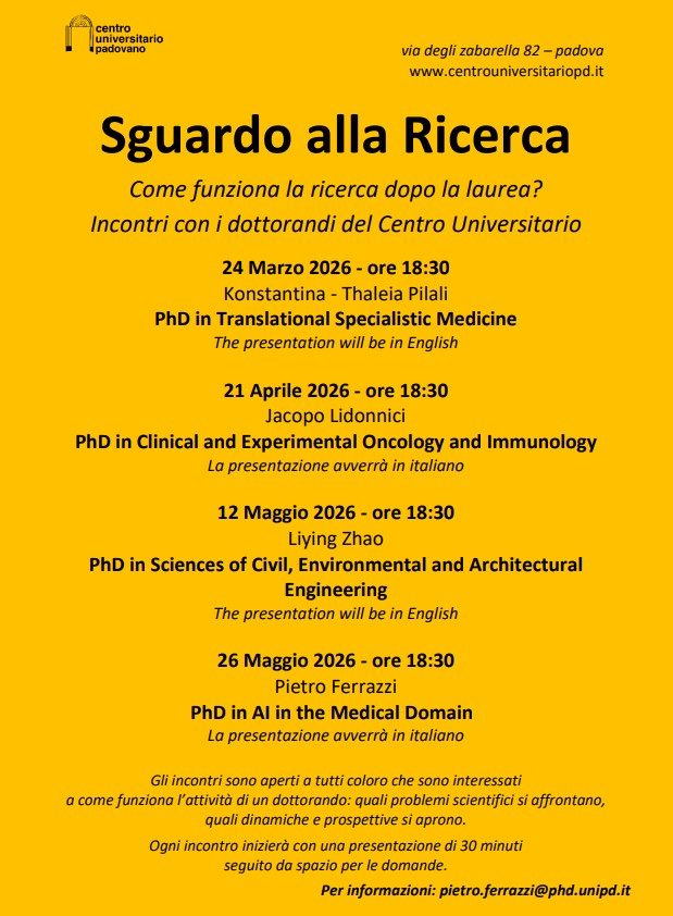 archivio proposte del centroda Mercoledì 24 Marzo 2026 - ore 18.30Sguardo alla Ricercaal centro universitarioIndietro