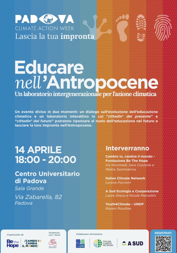 archivio proposte ospitateMartedì 14 Aprile 2026 - ore 18.00evento Padova Climate Action Week: “Educare nell’Antropocene”al centro universitario Indietro